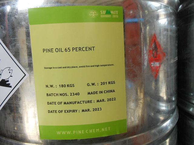 Pine Oil 65% is the by-product of producing terpineol from gum turpentine. It has a strong sterilizing effect and superior ability of deodorization, wetness, clearance and penetration.